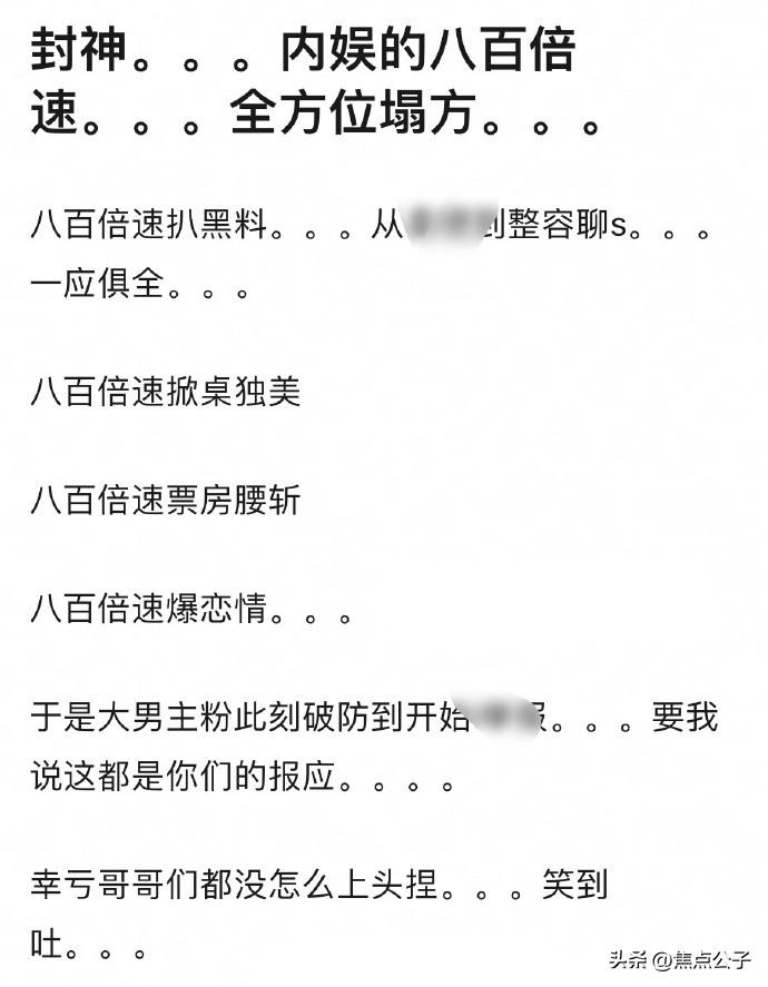 人红是非多,由于暑期爆火,于适如今的关注度自然不一样,不过这塌房的速度是800倍吧!《封神》真的重新定义内娱八百倍速,上次塌的这么快的还是肖宇梁……